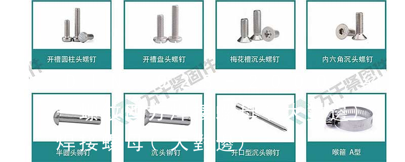法蘭面螺母(GB6177/DIN6923)、法蘭面螺母尼龍鎖緊螺母(DIN6926)、四角焊接螺母(DIN928)、六角焊接螺母(DIN929)、蝶帽(GB62、DIN315、美制)、K帽等。2、合金鋼國標螺母的標準尺寸為5/16-4"。合金鋼國標螺母包 六角焊接螺母標準規(guī)定的是規(guī)格為M4-M16的焊接螺母,是適用于可焊接的鋼板連成的焊接螺母,其具體國標GB(GB/T)見下圖。要注意正確讀取標準表中的數(shù)字,如螺紋規(guī)格D=M10,即材料為含碳量不大于0.25%的鋼,不經(jīng)表面處理的