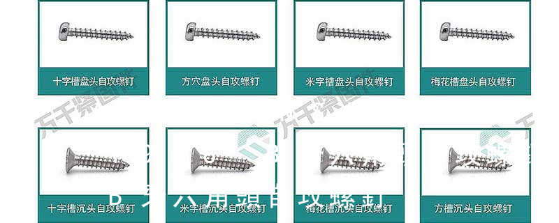 自切自攻螺釘有以下幾種型式:十字槽盤頭自切自攻螺釘,十字槽沉頭自切自攻螺釘。十字槽半沉頭自切自攻螺釘,六角頭自切自攻螺釘。3、自擠自攻螺釘(自攻鎖緊螺釘)自擠自攻螺釘的螺紋一般為機螺紋,很少采用自攻螺紋。在扳擰