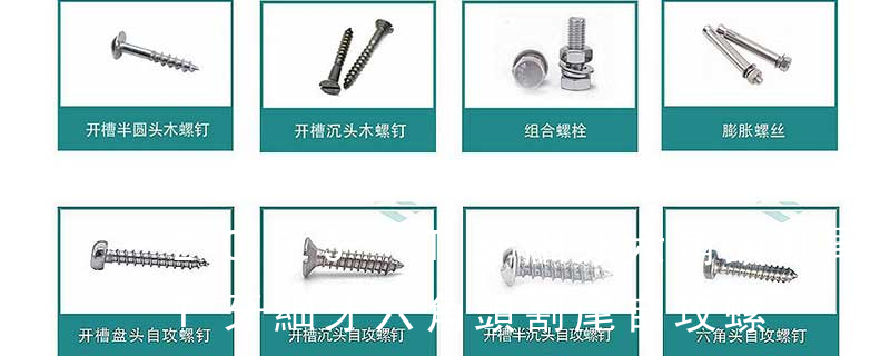 主要分類包括普通螺絲、機螺絲、自攻螺絲和膨脹螺絲三種。有頭螺釘Cap screw 過去限于全牙的扣件。六角頭螺釘Hex cap screw與大六角螺栓Hex bolt 顧名思義為頭部為六角型的外螺紋扣件,設計為使用扳手轉動。依照ASME B18.2.