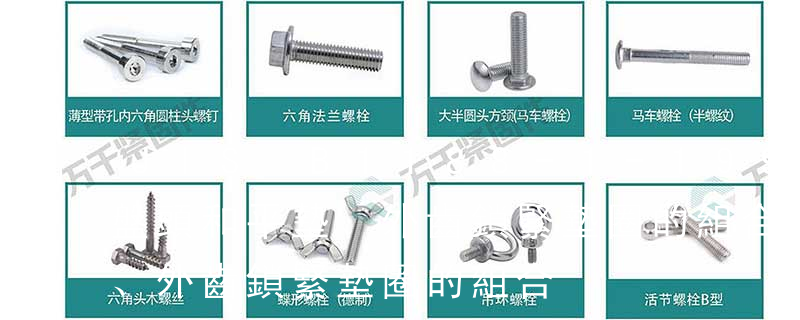 11. 組合件和連接副:組合件是指組合供應的一類緊固件,如將某種機器螺釘(或螺栓、自供螺釘)與平墊圈(或彈簧墊圈、鎖緊墊圈)組合供應;連接副指將某種專用螺栓、螺母和墊圈組合供應的一類緊固件,如鋼結構用高強度大六角頭螺栓連接副。