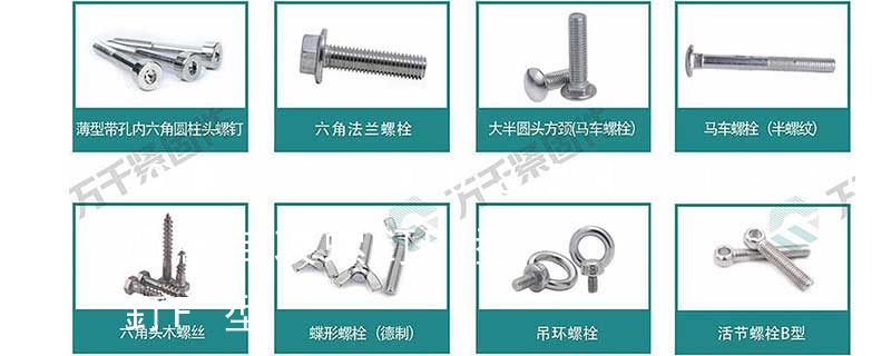 M代表米制螺紋,比如,M8*1.25*50意思是公稱直徑為8mm螺距為1.25螺桿長度為50mm;L表示螺栓的長度,D表示公稱直徑。規格標準——GB標準 方頭螺栓 C級 GB 8-88 沉頭方頸螺栓 GB 10-88 沉頭帶榫螺拴 GB 11-88 半 1、頭部形狀頭部形狀各式各樣。有圓頭(半圓頭)、扁圓頭、圓頭凸緣(帶墊)、扁圓頭凸緣(帶墊)、盤頭、盤頭凸緣(帶墊)、沉頭、半沉頭、圓柱頭、球面圓柱頭、喇叭頭、六角頭、六角法蘭頭、六角凸緣(帶墊)頭等。2