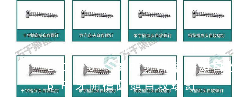1.機螺釘 2.自攻螺釘 3.鉆尾螺釘 4.墻板釘 5.纖維板釘 6.木螺釘7.六角木螺釘 8.不脫出螺釘 9.組合螺釘 10.微型螺釘 11.家具螺釘 12.電子螺釘 13.鏈帶螺釘頭型 :1.六角頭(hexagon head)2.六角頭法蘭面(hexa